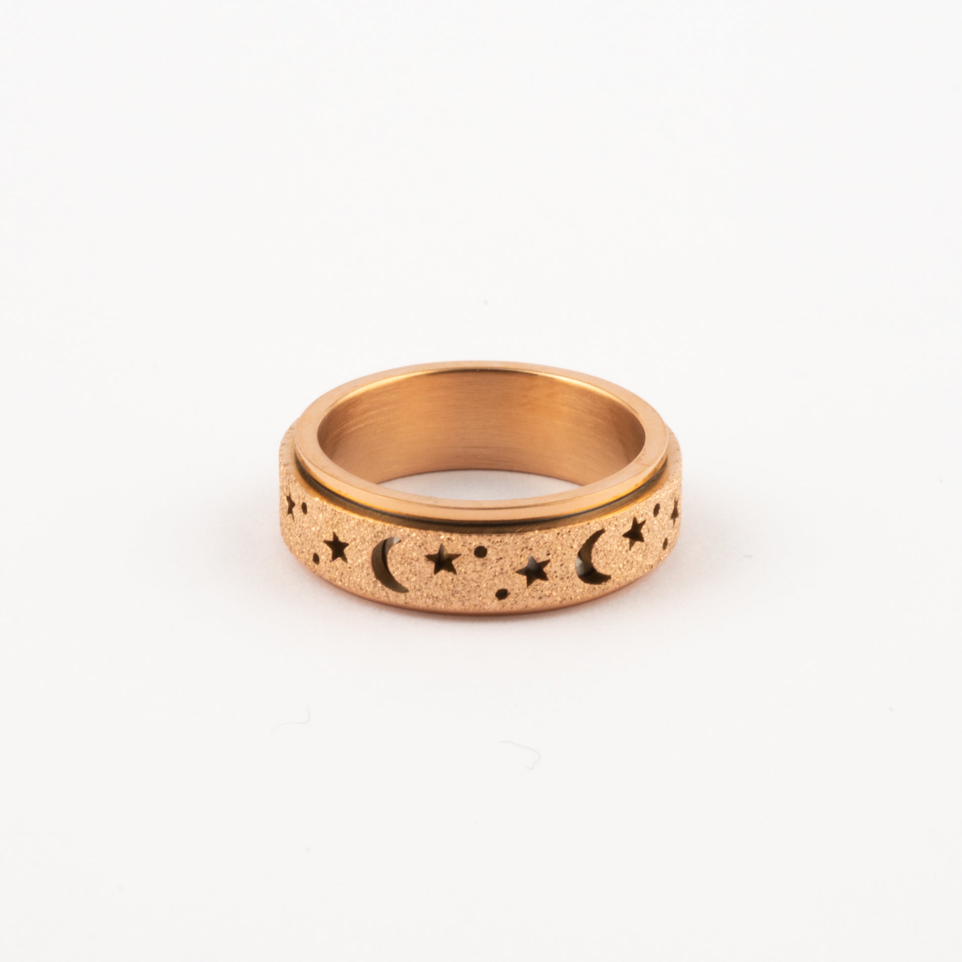Anillo Deslizante Luna y Estrellas Aspero Oro Rosa